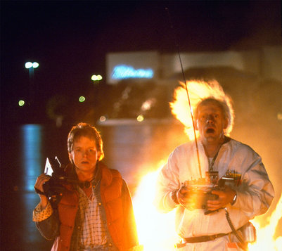 Martyho McFlye (Michael J. Fox) späť do minulosti, aby zachránil budúcnosť.