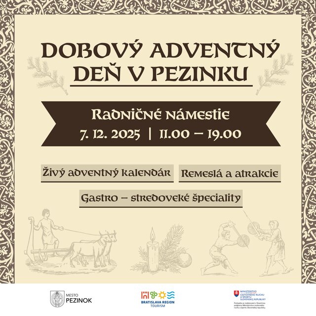 Advent a predvianočné obdobie sa o pár dní rozbehne naplno. Túto jedinečnú atmosféru vám vdýchne aj DOBOVÝ ADVENTNÝ DEŇ V PEZINKU.